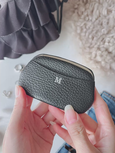 【イニシャル刻印対応】がま口 押し口M ポケット付き 小銭入れ レザーミニマルウォレット (日本製)