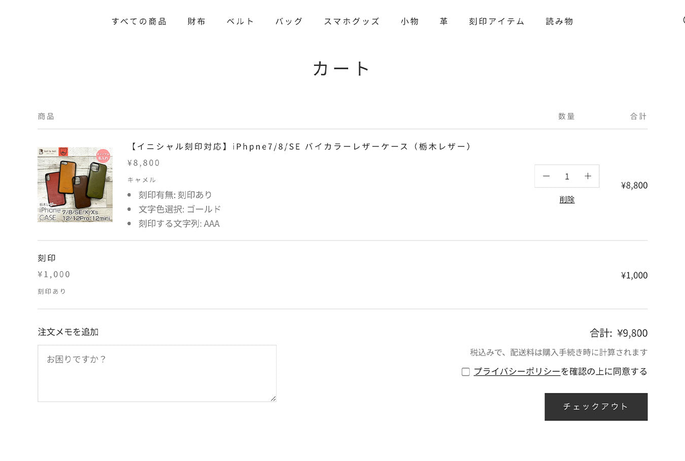 カートページの注文内容をご確認の上、決済画面へお進みください。