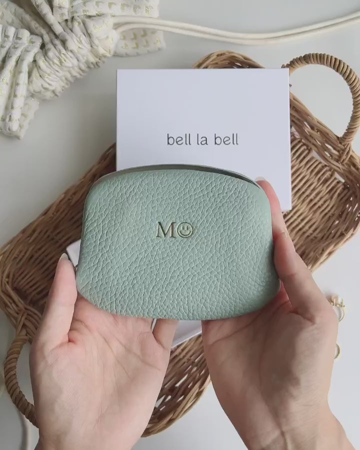 上質なシボのあるイタリアンレザーを使用したbell la bell ロゴ入りがま口小銭入れです。